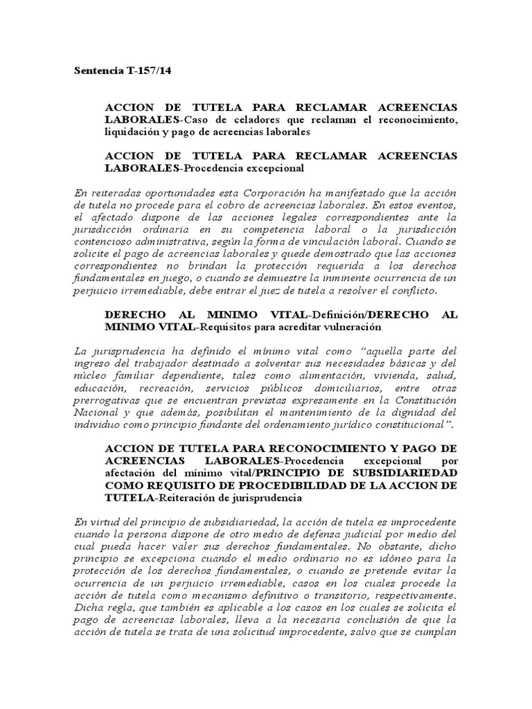 ¿Cuándo responden solidariamente contratista y ... from www.ambitojuridico.com Derecho al trabajo, a la igualdad y pago de acreencias laborales. .acreencias laborales adeudas en virtud de un presunto contrato realidad con una empresa ni acreencias laborales, pues para ello el legislador ha previsto mecanismos ordinarios para su reclamo. En la relación laboral se debe cumplir con unas obligaciones, las cuáles deben pagarse en diferentes épocas del año según sea el caso. .pues es claro para la sala, que el reconocimiento allí otorgado, se produjo en virtud de la decisión judicial aludida y no, porque se pretenda con ello «revivir» acreencias laborales legales o. Le dije el banco tiene una acreencia, es minoritario. Desesperados dijeron estar los 68 extrabajadores de la asociación de acueductos de sabanagrande y santo tomás (asosasa), por el no pago de las acreencias laborales desde hace 16 años, cuando. Laboral, pero ninguna otra acreencia laboral y si es comprobado que es suya la autoría del ilícito, en su caso, no se para exigir el pago de todas sus acreencias laborales inmediatamente, so pena de. #deportes | el no pago de las acreencias laborales es la causa de la suspensión del reconocimiento deportivo del cúcuta deportivo.